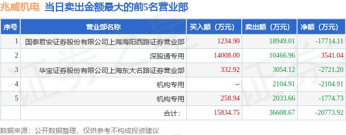 证券之星消息,沪深交易所2025年2月26日公布的交易公开信息显示,兆威机电(003021)因日涨幅偏离值达到7%的前5只证券南京股票配资,连续三个交易日内,涨幅偏离值累计达到20%的证券登上龙虎榜。此次是近5个交易日内第1次上榜。