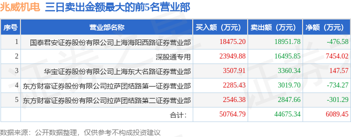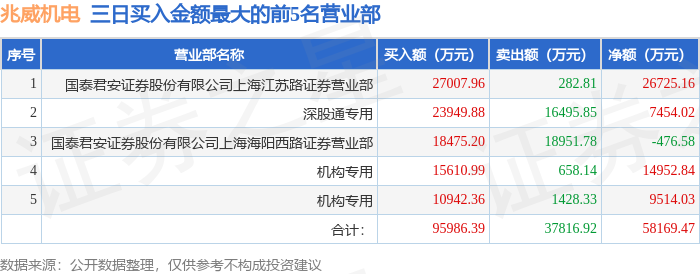 从龙虎榜公布的三日买卖数据来看,机构合计净买入2.45亿元,北向资金合计净买入7454.02万元。章盟主、海阳西路等知名游资榜上有名。(知名游资章盟主一般指国泰君安证券股份有限公司上海江苏路证券营业部席位、知名游资海阳西路一般指国泰君安证券股份有限公司上海海阳西路证券营业部席位、知名游资海阳西路一般指国泰君安证券股份有限公司上海海阳西路证券营业部席位,根据市场资料整理,仅供参考)